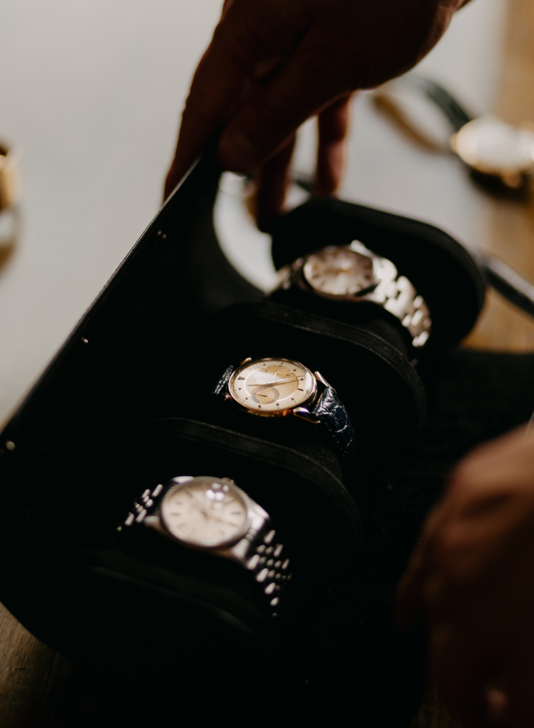 Timecatchers Vintage Watches powstało z wieloletniej fascynacji zegarkami vintage, która towarzyszyła mi już w wieku nastu lat. w 2019 roku po studiach na Uniwersytecie Ekonomicznym w Poznaniu przeprowadziłem do Szwajcarii, gdzie od samego początku szukałem wszędzie ciekawych zegarków i zgłębiałem wiedzę o temacie. Ojczyzna zegarmistrzostwa okazała się być dla mnie łaskawa i po 1,5 roku mieszkania w Helwetii zdecydowałem się rzucić etat i skupić zawodowo na zegarkach. Tutaj moją pierwszą poważną miłością okazała się być Omega, która do dziś jest kręgosłupem naszego sklepu - mnogość pięknych wzorów, jakość wykonania, ogromny wpływ firmy na historię zegarmistrzostwa a także kultowość samego brandu są głównymi powodami, dla których właśnie od tej marki wszystko się zaczęło. Z czasem podstawą naszej działalności stały się także Rolex, Cartier czy IWC. Jednak nie oznacza to, że zamykamy się na inne marki - staramy się oferować szeroki wybór czasomierzy różnych marek, w różnych przedziałach cenowych - skupiając się na jakości, stanie oraz unikalności oferowanych egzemplarzy. Wszelkie oferowane przez nas zegarki są przeze mnie skrupulatnie selekcjonowane a także sprawdzane pod kątem technicznym. Timecatchers to dziś zespół trzech osób - w połowie 2023 roku dołączyli do mnie Daria i Daniel, którzy pomagają mi dalej rozwijać koncept TC i wprowadzać do oferty także akcesoria do zegarków czy usługi pomagające pielęgnować i utrwalać tradycyjne zegarmistrzostwo.