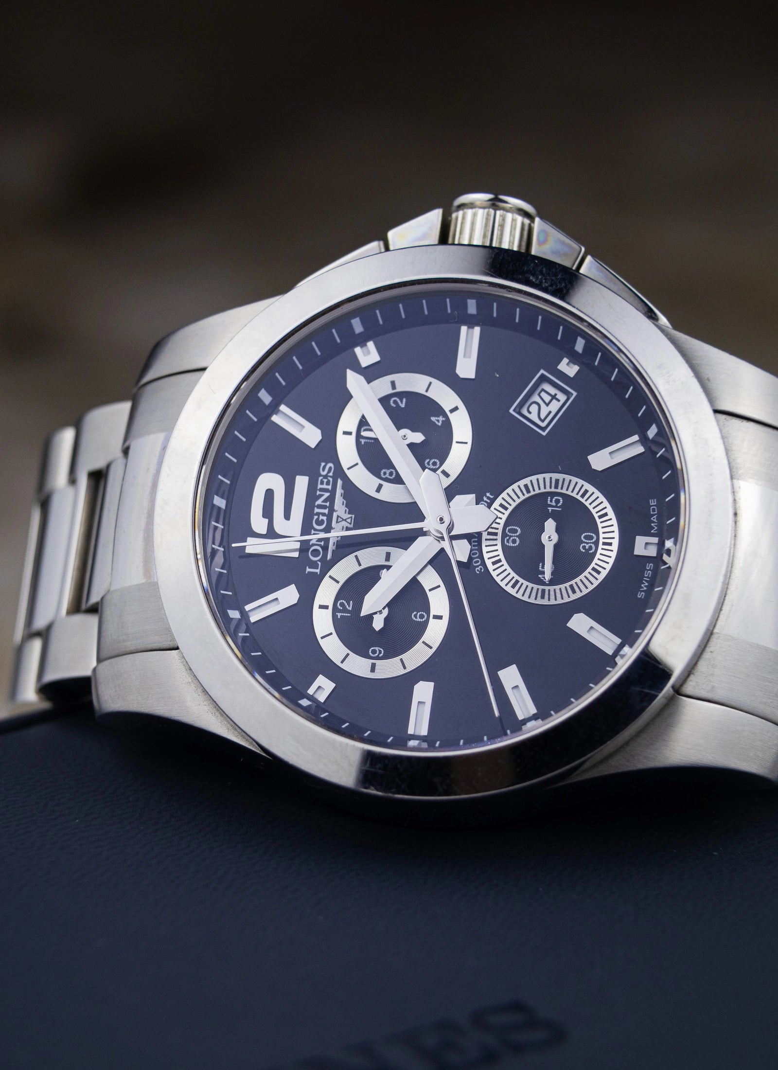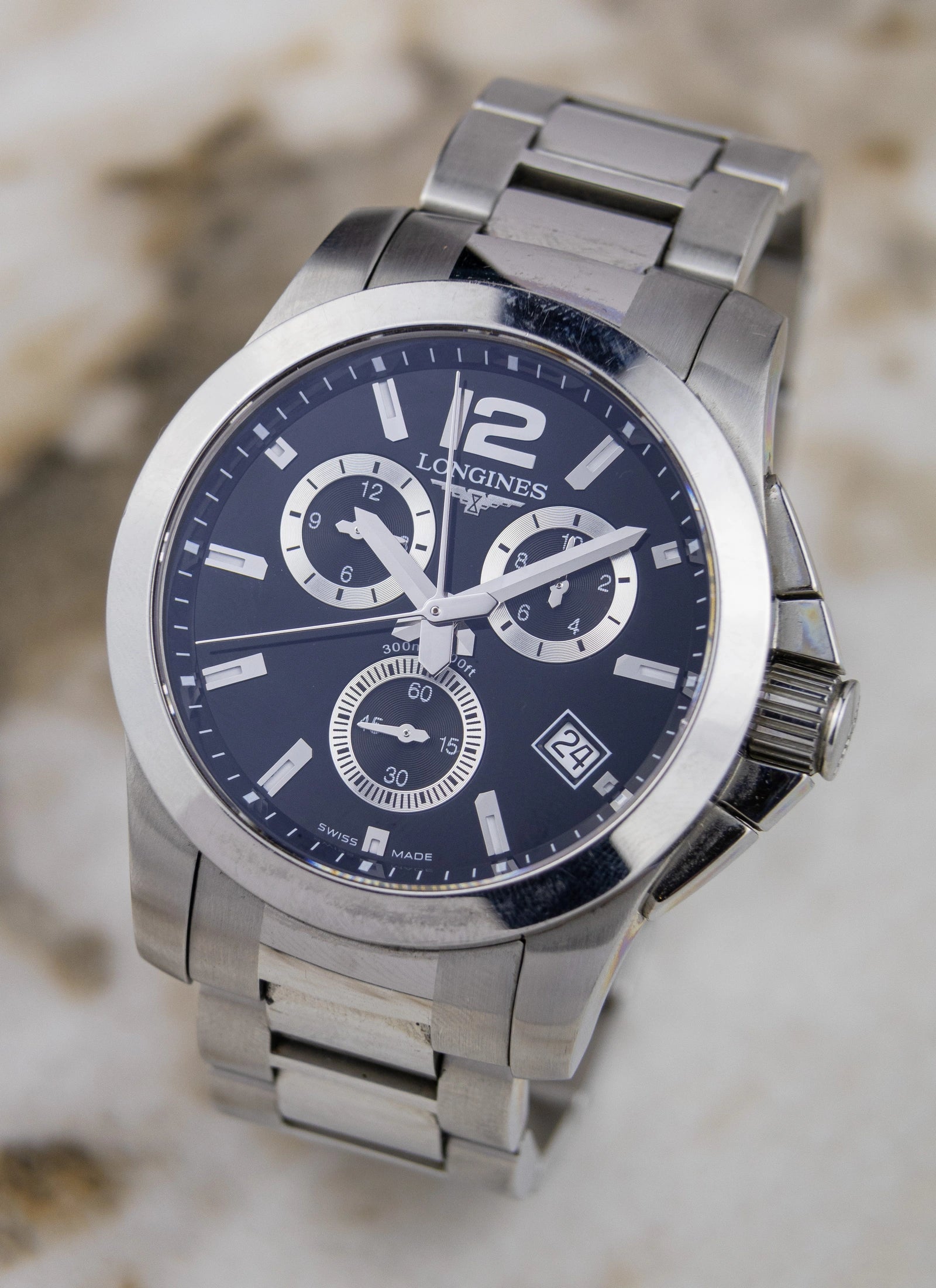 Longines Conquest Chronograph to sportowy elegancki zegarek, który łączy funkcjonalność z wyrafinowanym stylem. Solidna stalowa koperta i precyzyjny mechanizm kwarcowy sprawiają, że jest idealnym towarzyszem dla dynamicznych, aktywnych osób. Pełny zestaw z 2017 roku oferuje kompletny pakiet dla miłośników wysokiej jakości zegarmistrzostwa.